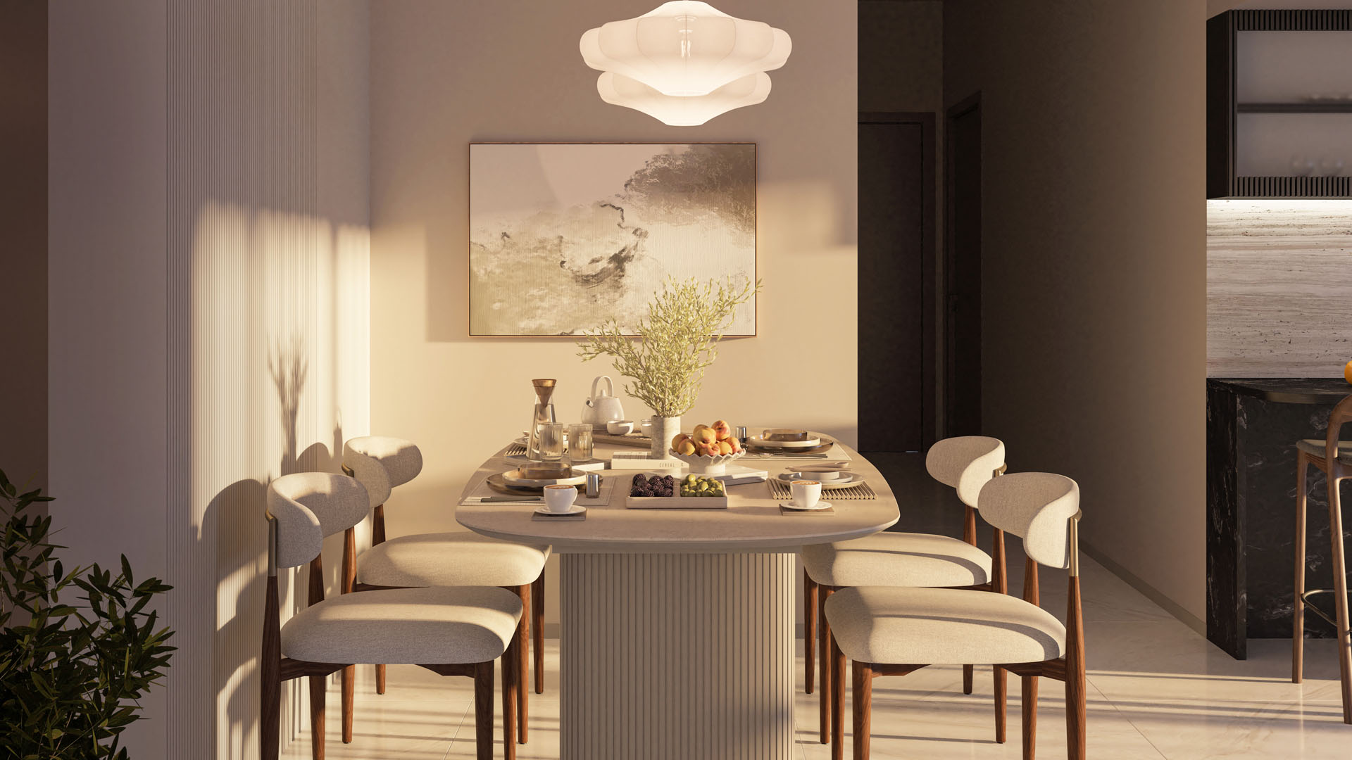 Designed with wide layouts and streaming natural light, the kitchen at Pallod Farms is both elegant and functional—a refreshing space that turns everyday cooking into an uplifting experience.